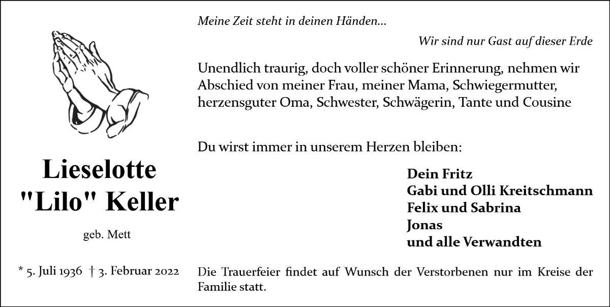 Lieselotte Kellergestorben am 3. Februar 2022